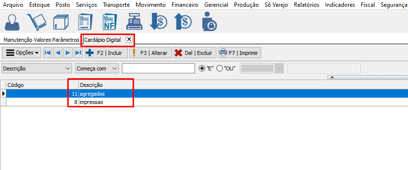 Dessa forma, os grupos selecionados serão somente aqueles criados para uso específicos do parâmetro marcado como 'SIM'.