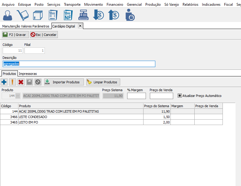 Essa função é utilizada, quando não se quer mandar todos os produtos do grupo para o food. Nesse caso, é necessário configurar e adicionar os produtos manualmente, somente os produtos que deseja que aparecerá no Food.