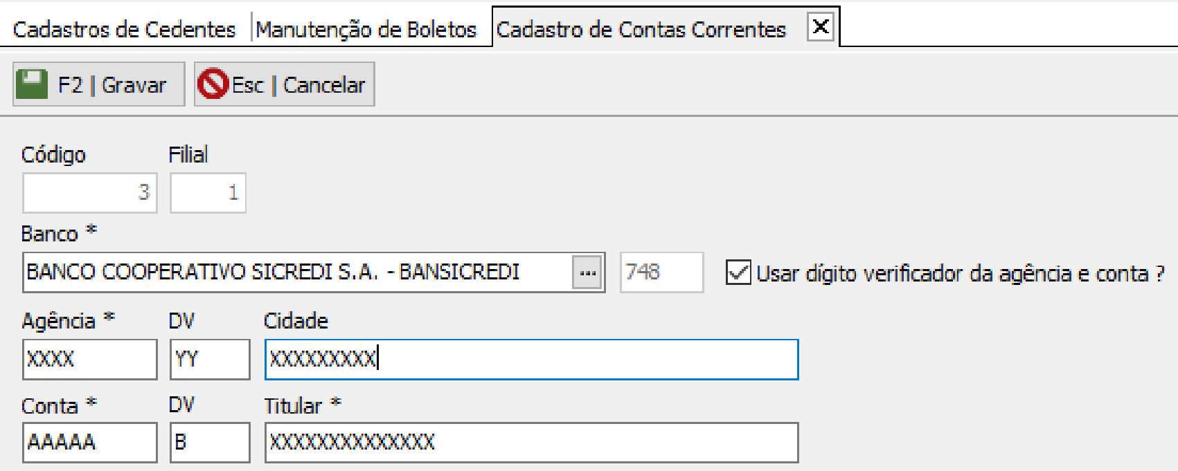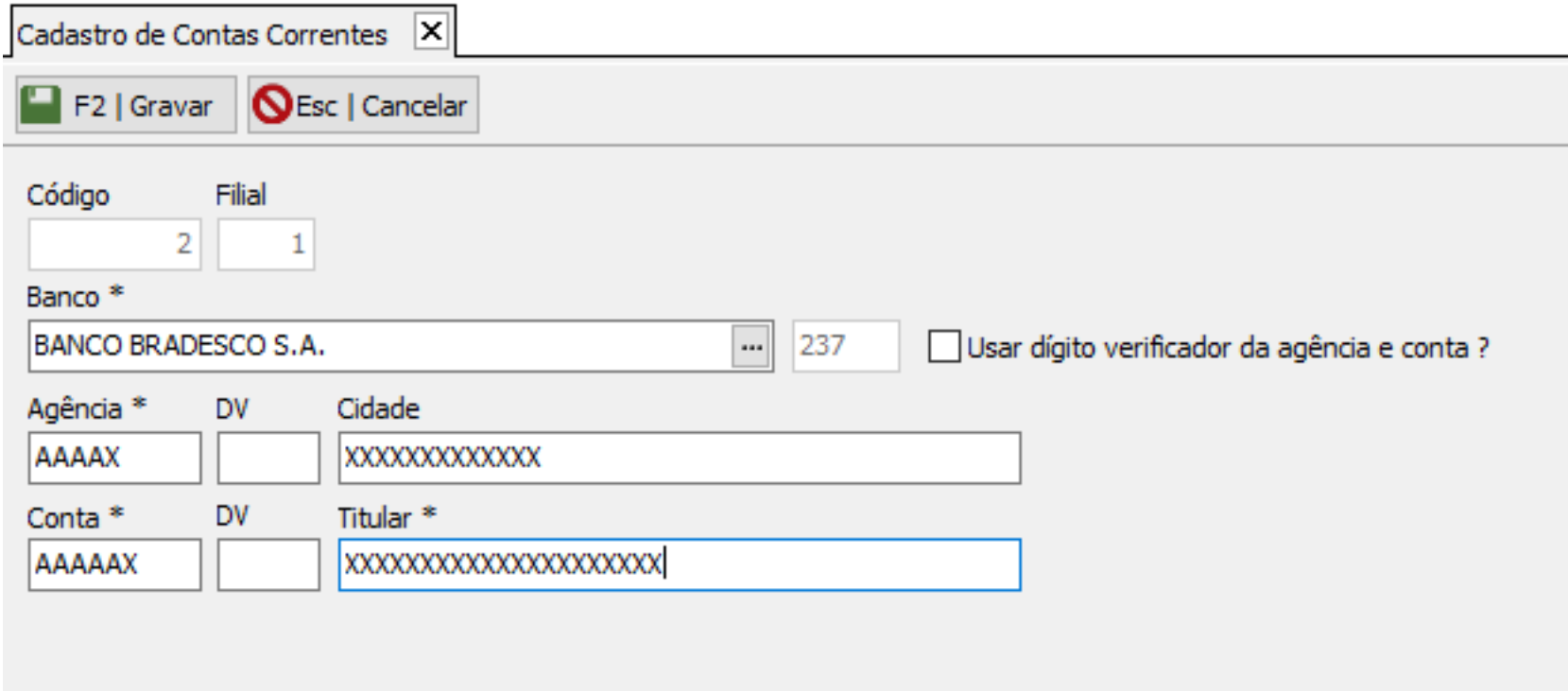 Conta Corrente : AAAAA – Número da Conta X – Dígito da Conta