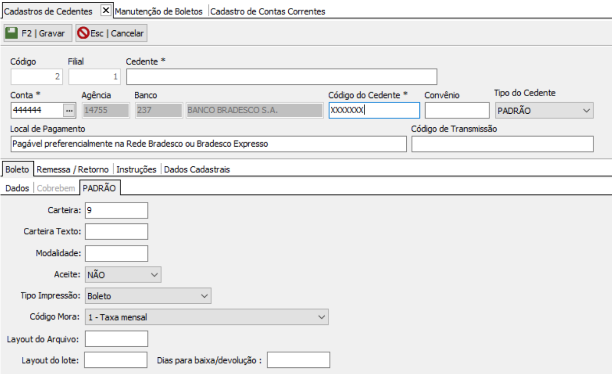 Código do Cedente – 5 Dígitos