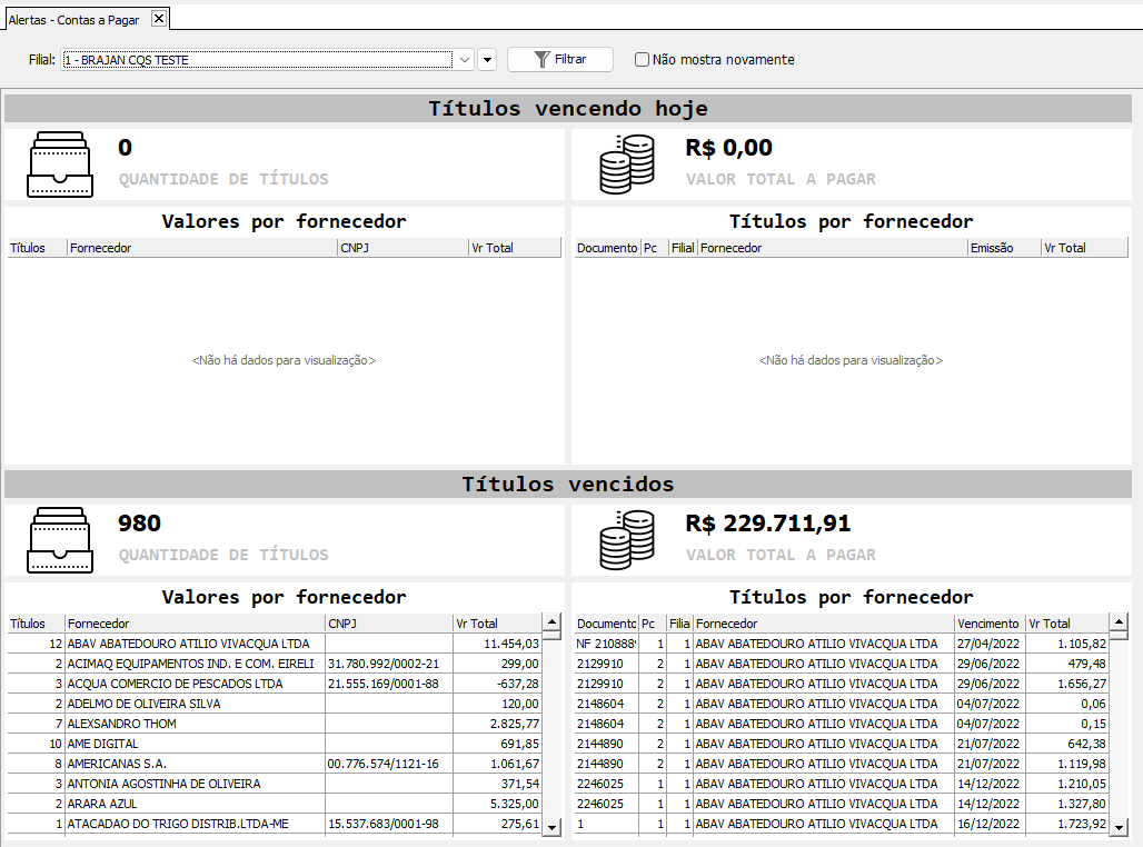 Após realizar esse procedimento, os alertas do Contas a Pagar serão habilitados ou desabilitados para o usuário.