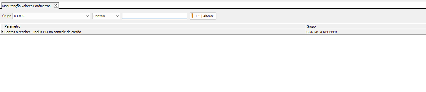 Foi criado o parâmetro: “Contas a Receber – Incluir PIX no controle de cartão”.