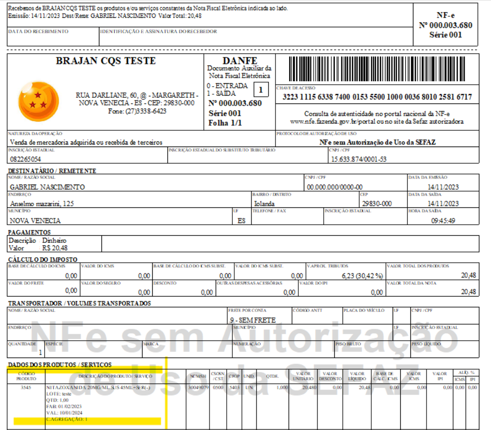 Gestores - Quando o produto contém lote apareça o LOTE DO PRODUTO, FABRICACAO E VALIDADE na DANFE.