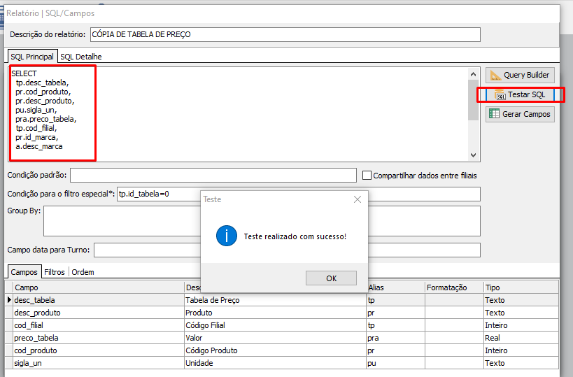 Em seguida, faz-se necessário copiar do esse Query e colar de volta no lugar do SQL Principal;