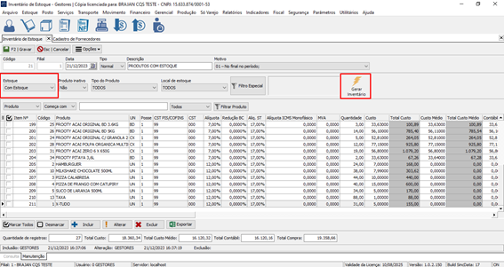 Gerar inventário com apenas os produtos “Com Estoque”. em Estoque => Inventário de Estoque