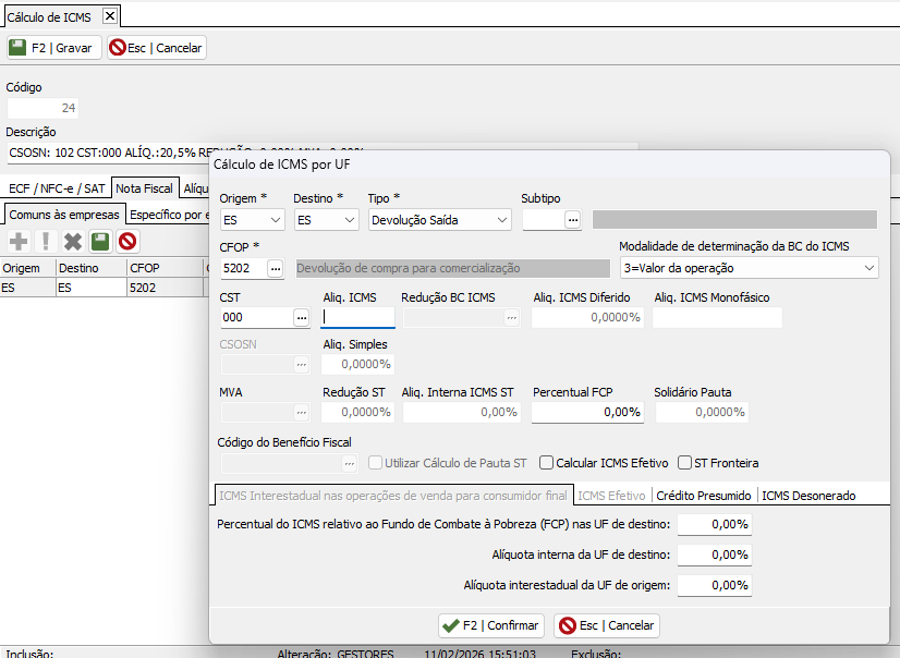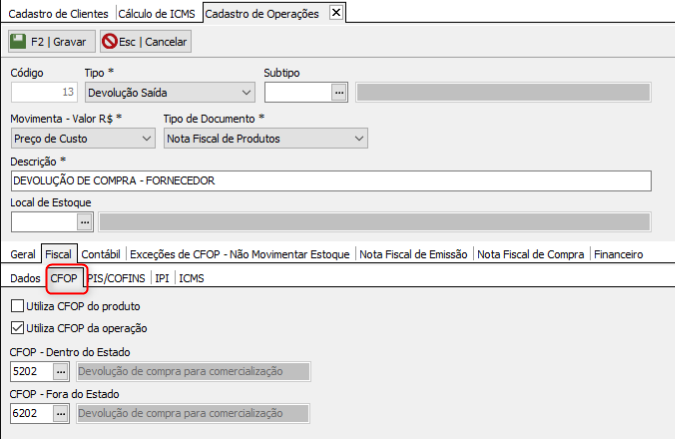 2️⃣ Configuração Fiscal da Natureza / Operação