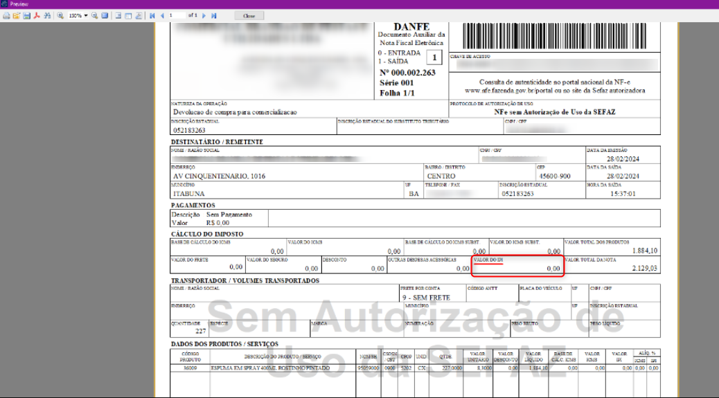 ⚠ Em devolução, se havia IPI na nota original, o correto é manter a informação para: