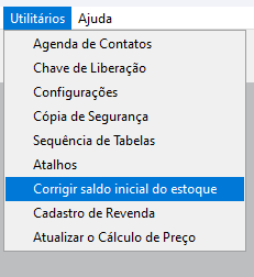 2. Utilitarios>Corrigir Saldo Inicial do Estoque.