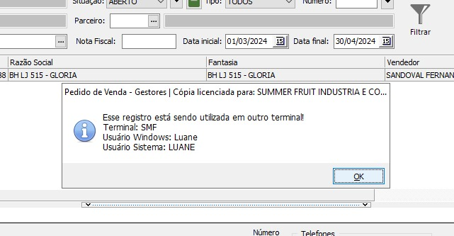 Caminho utilizado para correção : Utilitarios>Configuração>Registro>Liberar pedidos de venda bloqueados.