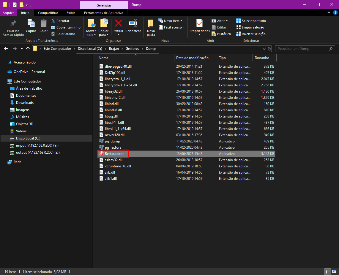 Obs.: É possível visualizar que existe a função Criar banco no Restaurador.