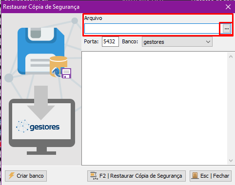 De acordo com o backup que irá restaurar é preciso informar o nome do sistema e a porta.