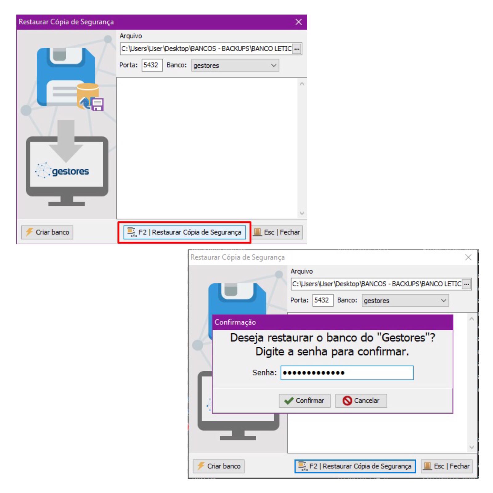 Para finalizar basta clicar na Função F2 | Restaurar Cópia de Segurança que automaticamente irá solicitar a senha para ser processado o backup.