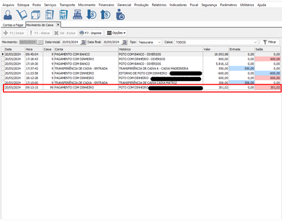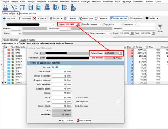 Com isso, no Movimento de Caixa - o movimento aparecerá na data baixada e não a data do sistema.