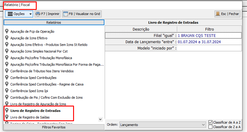 5° Relatório >fiscal > Livro de registro de Entrada e Saída.