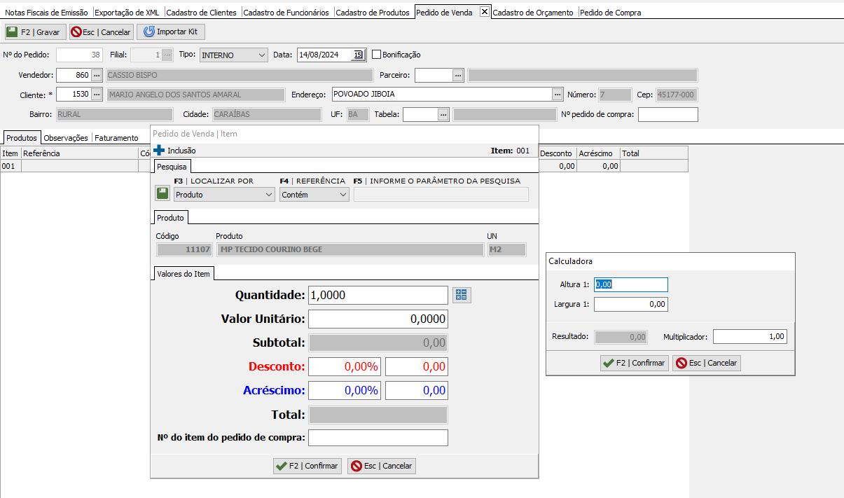 Esta calculadora está disponível na tela de Orçamento e Pedido de Venda.