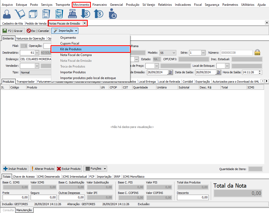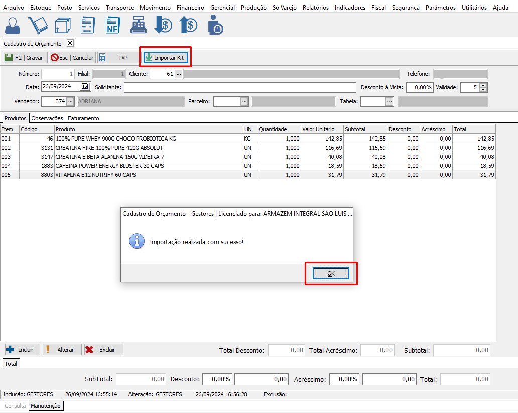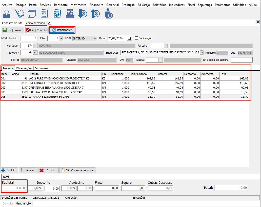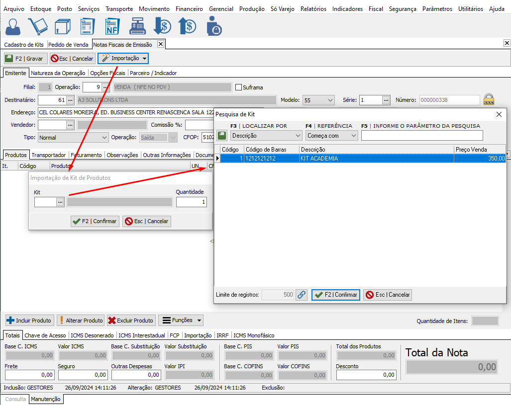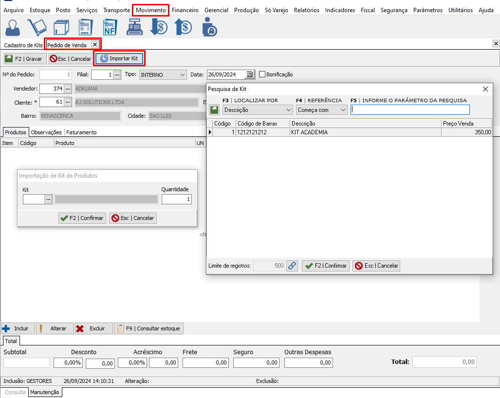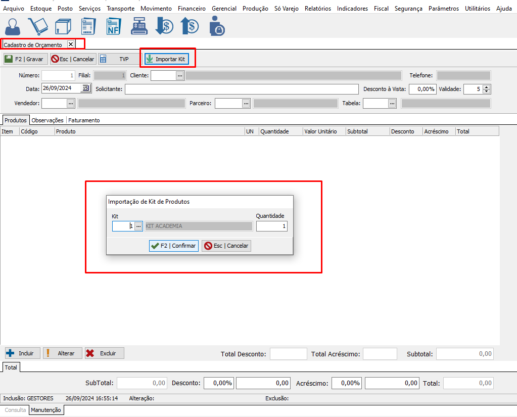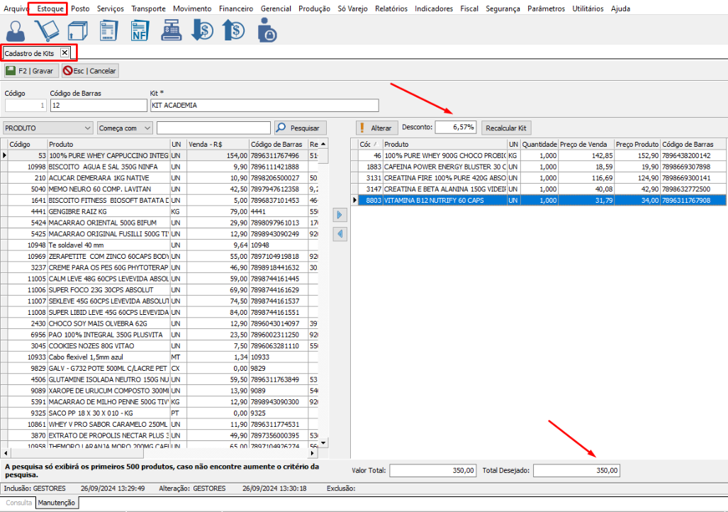 Cadastro de Kit no Gestores