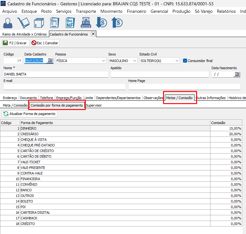 Comissão por Forma de Pagamento você precisa ativa-lo primeiro no Gestores em Critérios