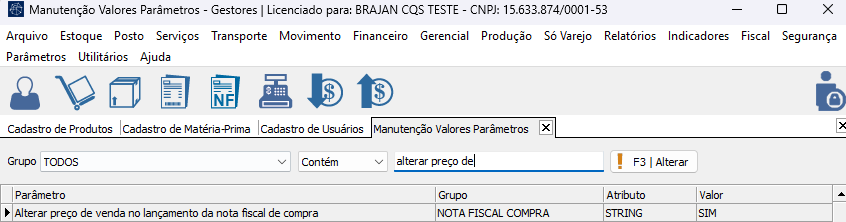 Se o parâmetro estiver desativado, será necessário utilizar duas telas para alterar o preço do produto. Primeiro, você deverá atualizar o valor na tela 'Manutenção de Preço'. Em seguida, será necessário acessar a tela 'Estoque > Alteração de Preço', selecionar o produto que teve a manutenção e concluir o procedimento de atualização.