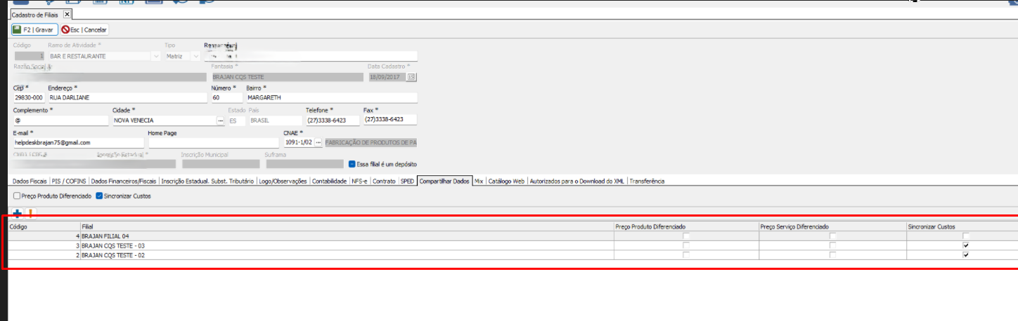 Após essa configuração, os cadastros passam a ser únicos e compartilhados automaticamente, não sendo necessário realizar sincronismos entre empresas.