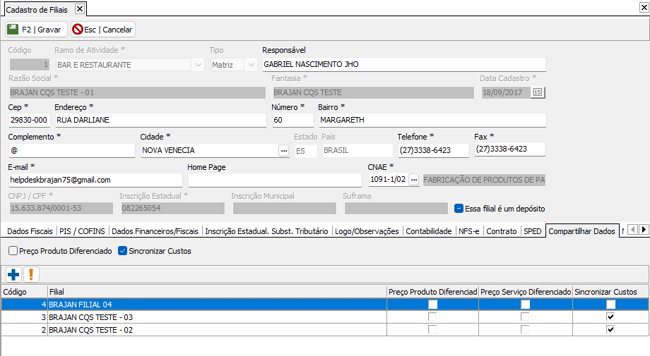 Após essa configuração, os cadastros passam a ser únicos e compartilhados automaticamente, não sendo necessário realizar sincronismos entre empresas.