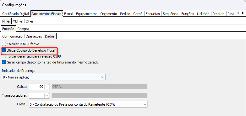 CÓDIGO DE BENEFÍCIO FISCAL - CONFIGURAÇÃO