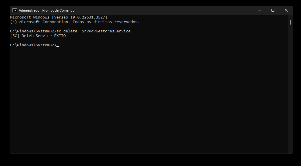 Isso vai excluir o serviço do PDV que será descontinuado.