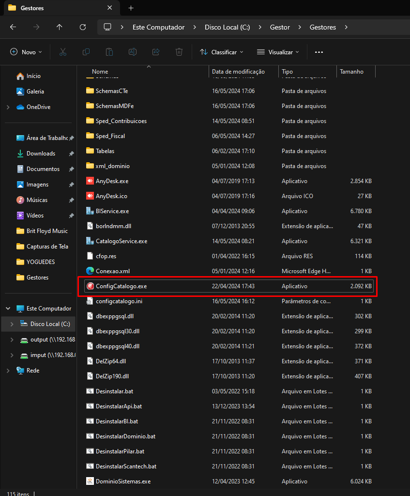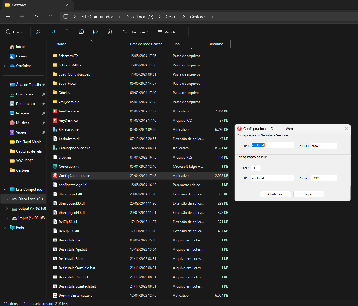 2°: Deverá ir na pasta do "Gestores", e abrir o arquivo "ConfigCatalogo.exe".