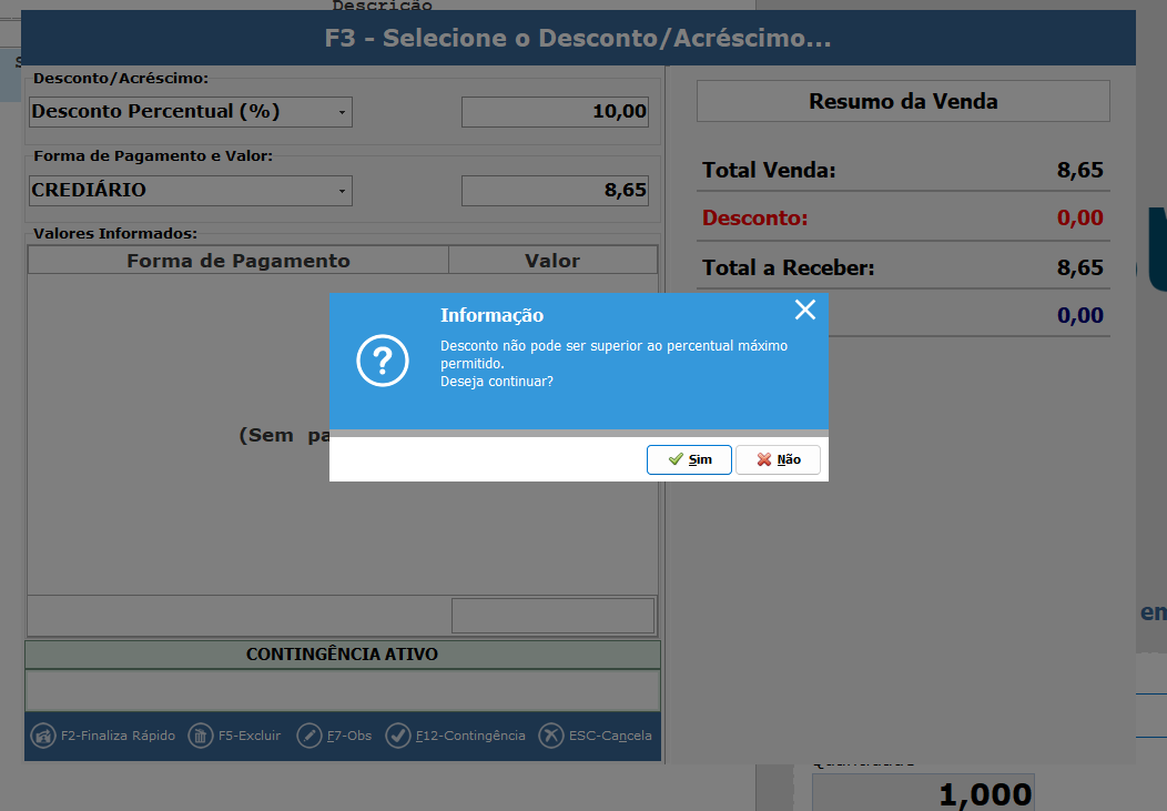 - Operador não consegue dar desconto;