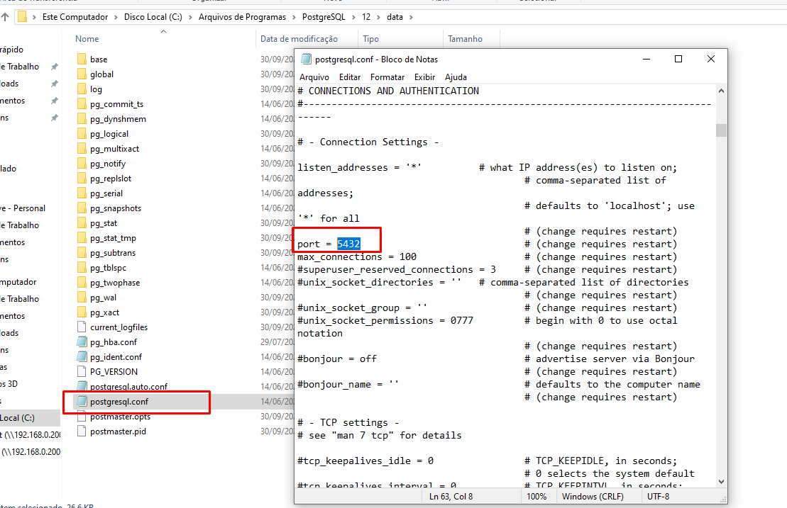 1. Trocar na pasta do PosgreSQL (C:\Arquivos de Programas\postgresql\12\data)