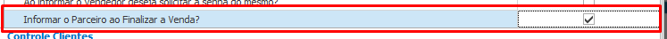Parâmetro: Informar o parceiro ao finalizar a venda?
