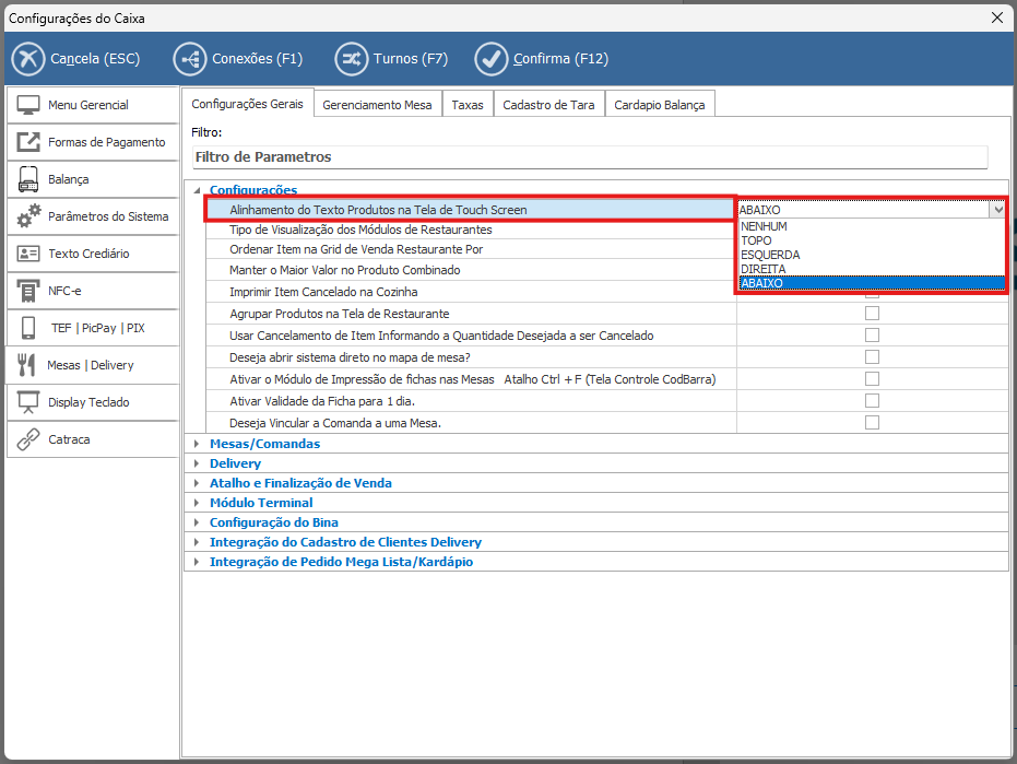 Este parâmetro e para definir em que posição fica o nome do produto no grid para adicionar os produtos na mesa.