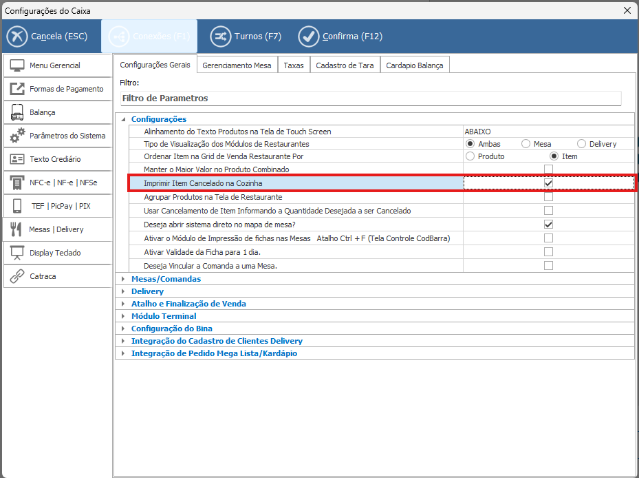 Este parâmetro é utilizado para imprimir uma comanda de produção na cozinha informando que um item que foi solicitado à produção foi cancelado.