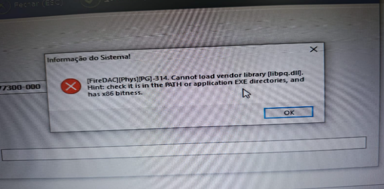 Quando as portas estão bloqueadas (firewall ou rede), o sistema não consegue carregar a biblioteca corretamente, resultando na mensagem acima.