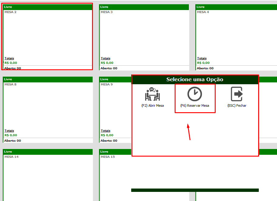Será aberta a tela do GestorPDV – Delivery/Mesas, onde são realizadas as operações relacionadas a mesas e comandas.
