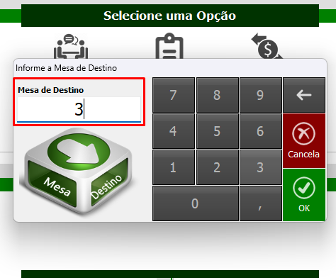 Selecione o número da nova mesa para onde os pedidos serão transferidos.