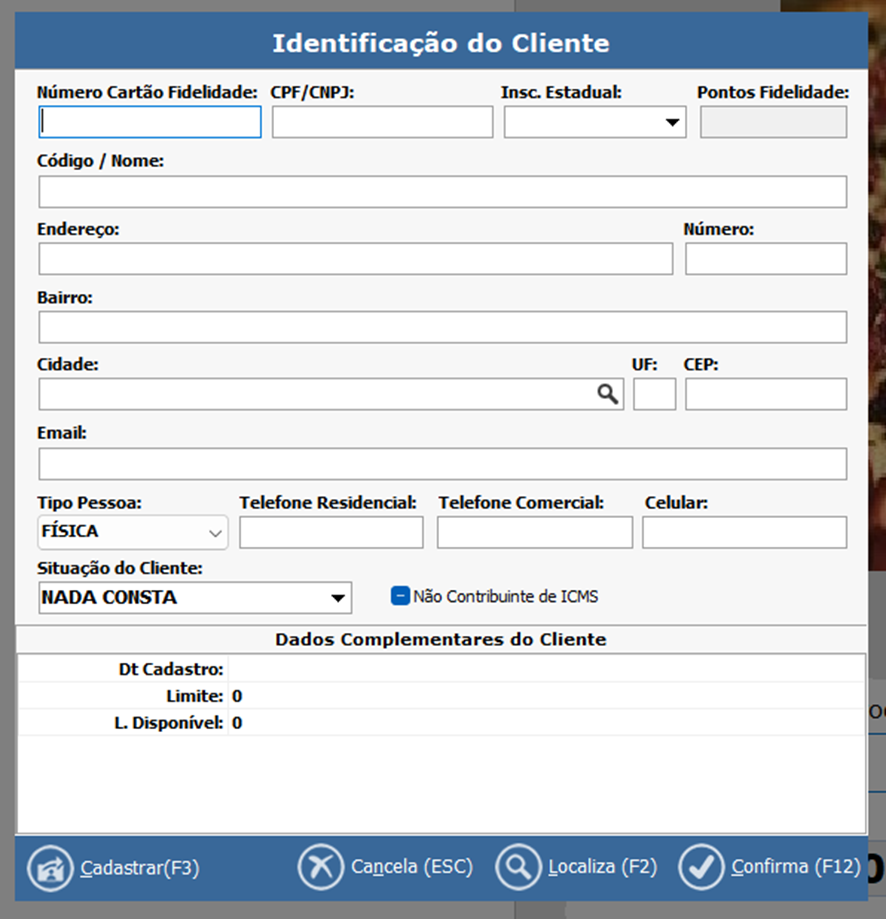 Com esse parâmetro ativo, sempre que uma venda for iniciada. Seja incluindo o produto pelo código ou bipando o código de barras, será solicitado o cadastro do cliente.