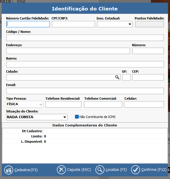 Com esse parâmetro marcado, a tela de informar o cliente aparece após selecionar o tipo fiscal que será a nota, se for um único tipo fiscal utilizado, assim que apertar o F3, a tela vai aparecer, para estar informando o cliente.