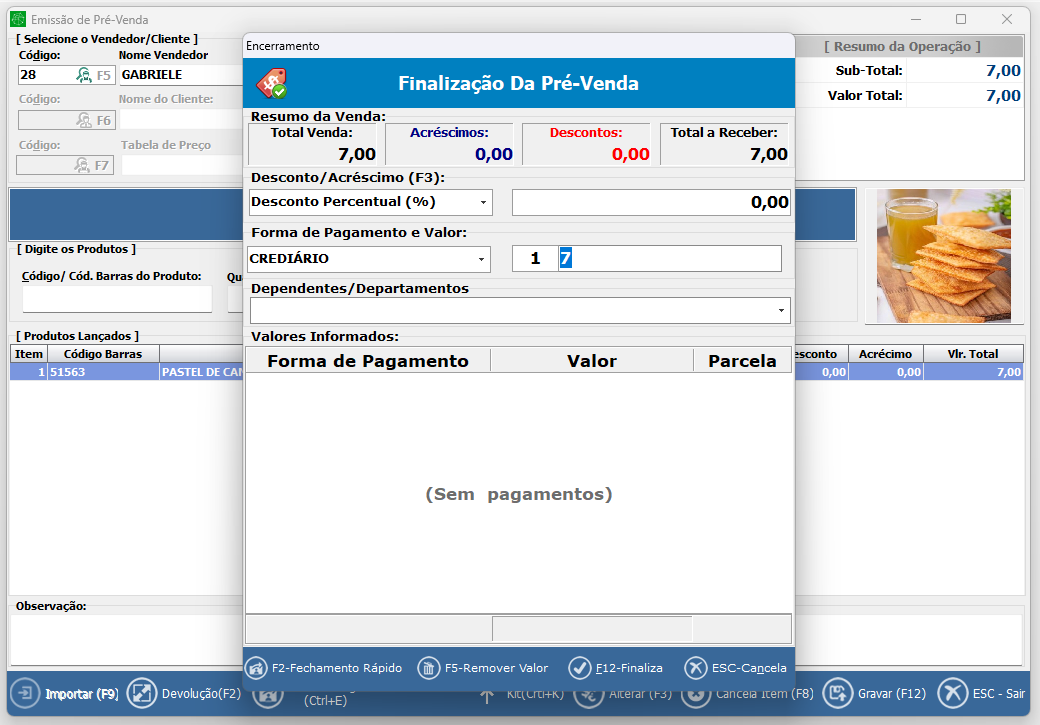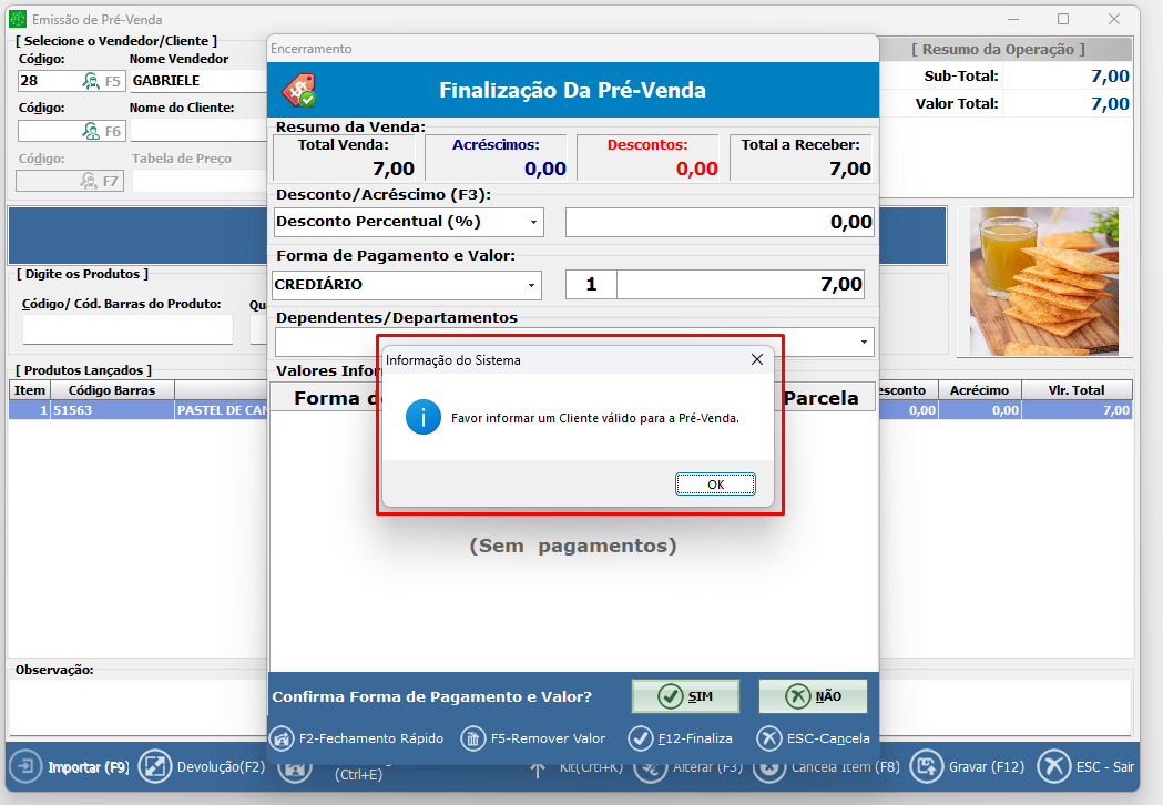 • Não permite finalizar vendas no crediário sem cliente vinculado;