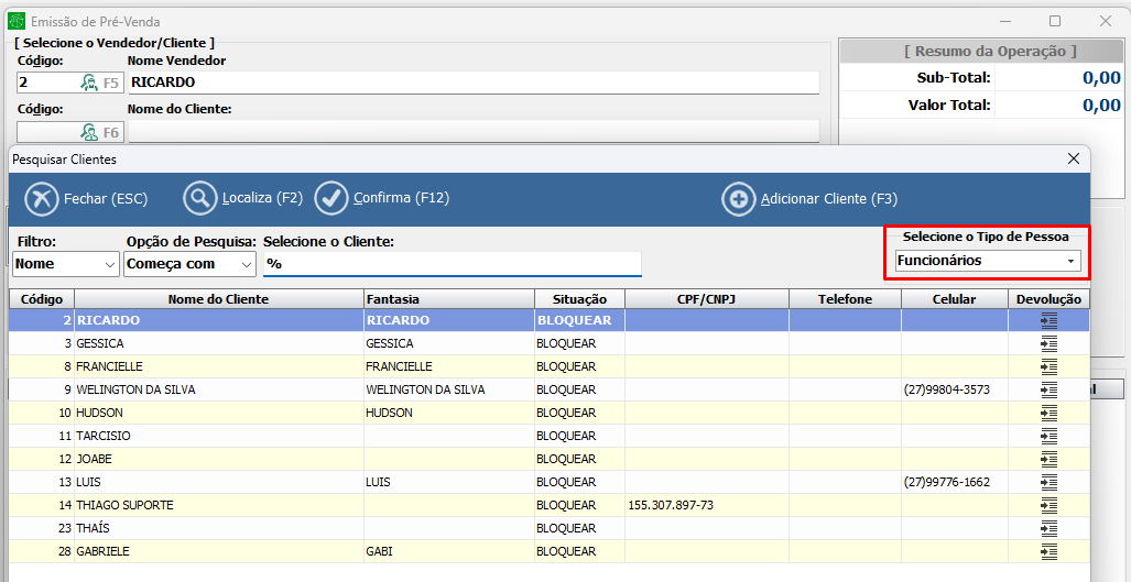 Clientes/Funcionários