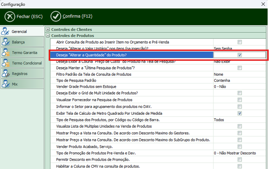 Com essa opção ativada, o usuário poderá alterar a quantidade do produto no momento da inclusão (ou edição) do item no orçamento ou pré-venda.