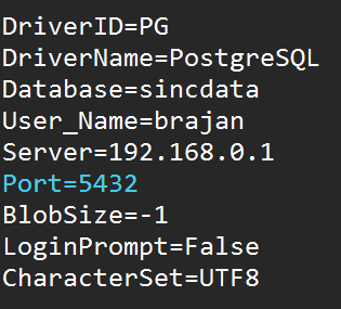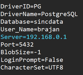 Esse arquivo trás as configurações básicas do banco de dados, mas nesse arquivo em especifico só se deve atentar a dois pontos: O 'Server' e 'Port' esses dois definem como a conexão vai ser realizada.