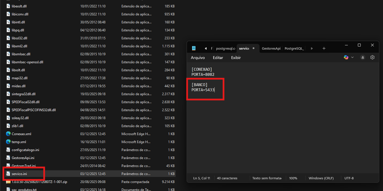 Seguindo o exemplo, se o Postgres está configurado na porta 5433, o arquivo do serviço deve estar com a porta apontada no arquivo: