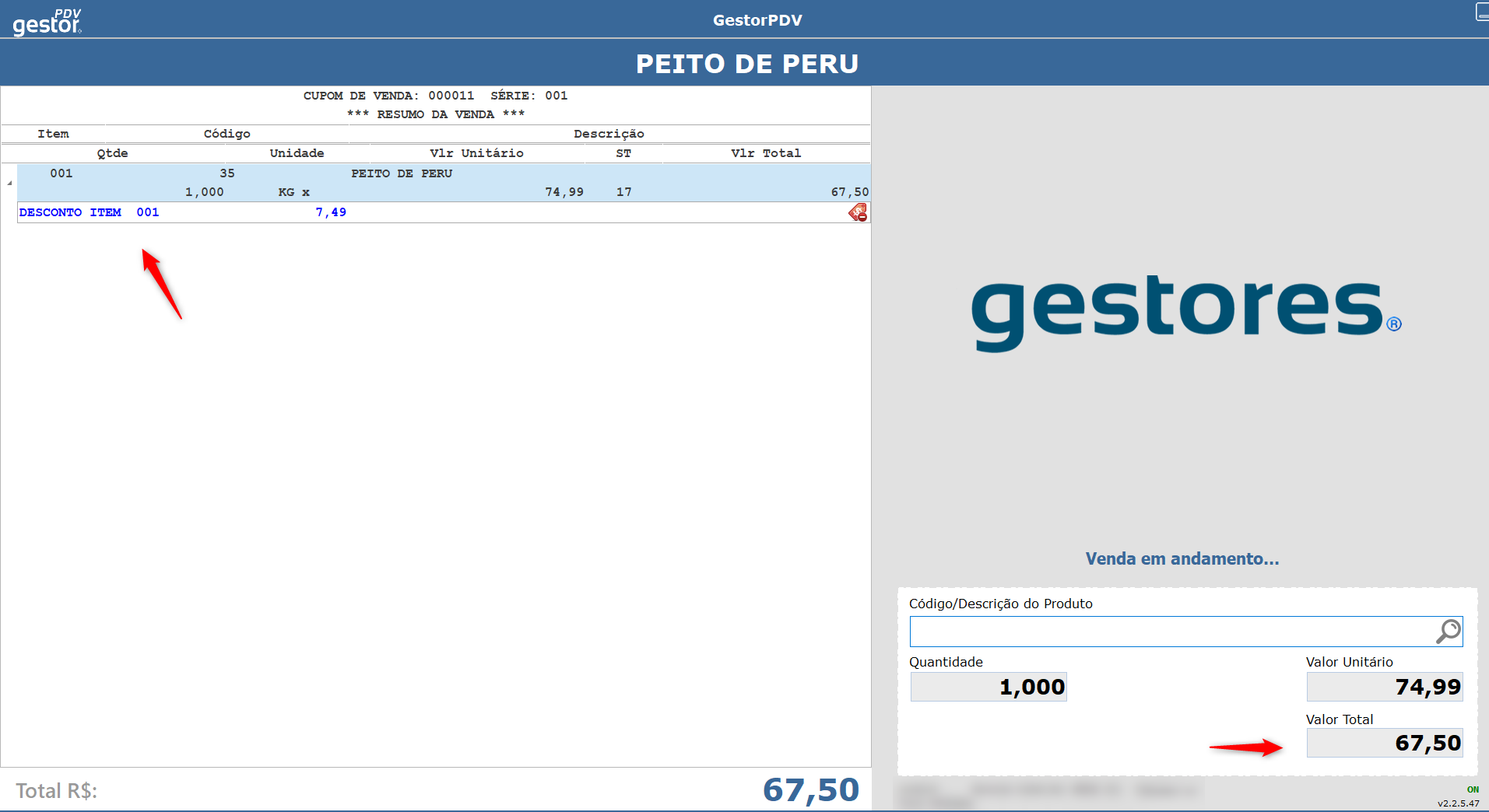 Após digitar a senha corretamente, será exibida a tela para informar o desconto do item.