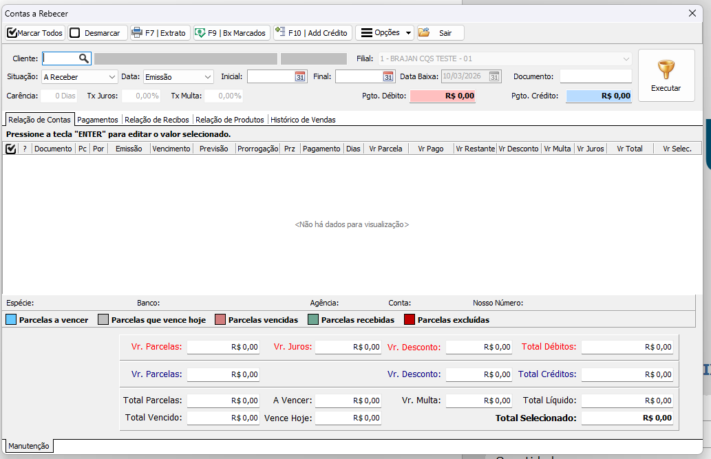Após digitar a senha corretamente, o Contas a Receber será aberto normalmente: