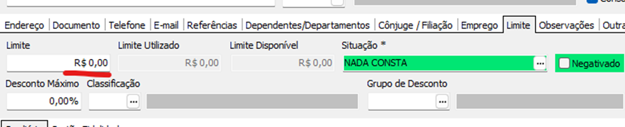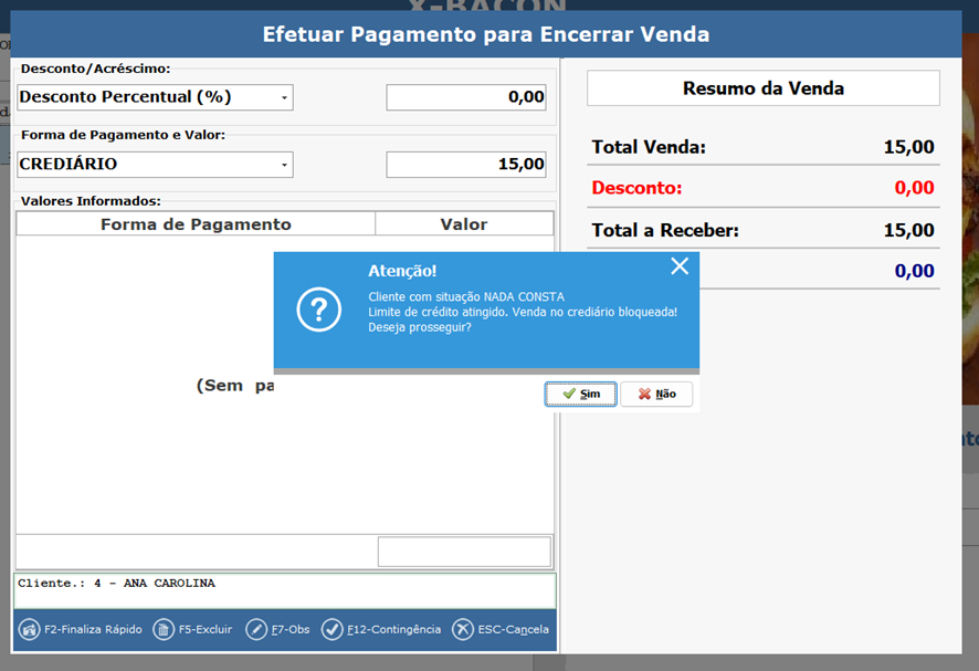Essa mensagem só vai aparecer caso o limite do cliente configurado no retaguarda, estiver igual a zero