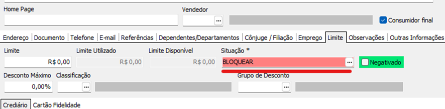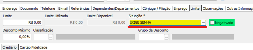 Com o Status de Bloquear, a venda será bloqueada não permitindo colocar nem senha.