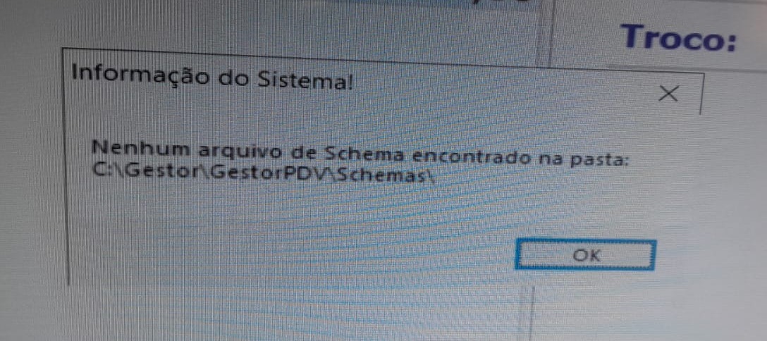 GestorPDV - Informação do Sistema! Nenhum arquivo de Schema encontrado na pasta: C:\Gestor\GestorPDV\Schemas\