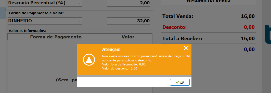 Para que permita aplicar desconto, mesmo utilizando a tabela de preço ou promoção. Necessita utilizar o seguinte parâmetro: