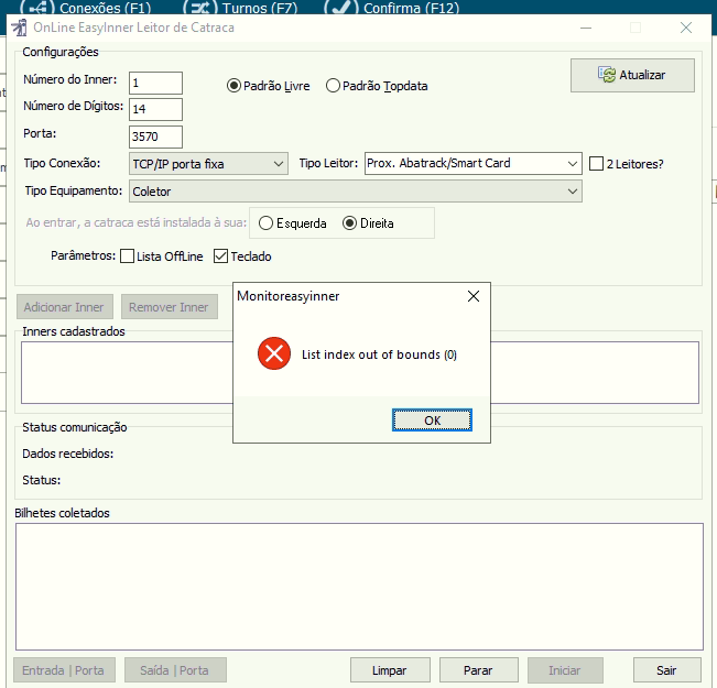 Quando ocorrer o erro ao abrir o Monitor da Catraca, siga os procedimentos abaixo para o sistema voltar a funcionar normalmente.
