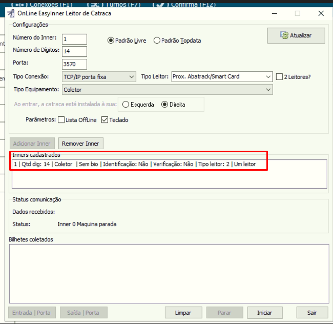 2. Após isso vai gerar as informações de Inners cadastrados, veja: